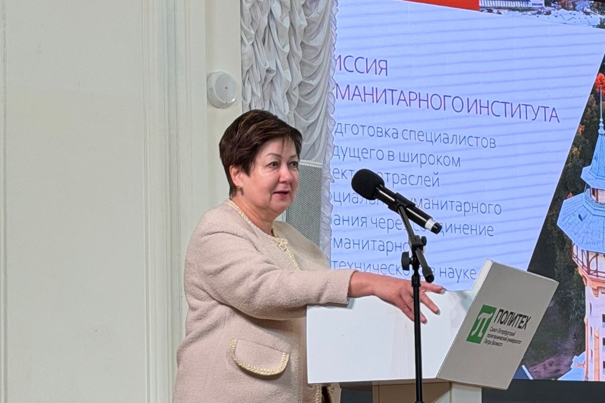 Торжественная программа на сцене Белого зала Политеха началась со слов Директора Гуманитарного института Натальи Чичериной. Наталья Васильевна открыла событие, рассказав о главной миссии ГИ — соединять гуманитарное и техническое: быть теми, кто строит мосты между языком и цифрой, культурой и инновацией, творческой идеей и её технологическим воплощением.