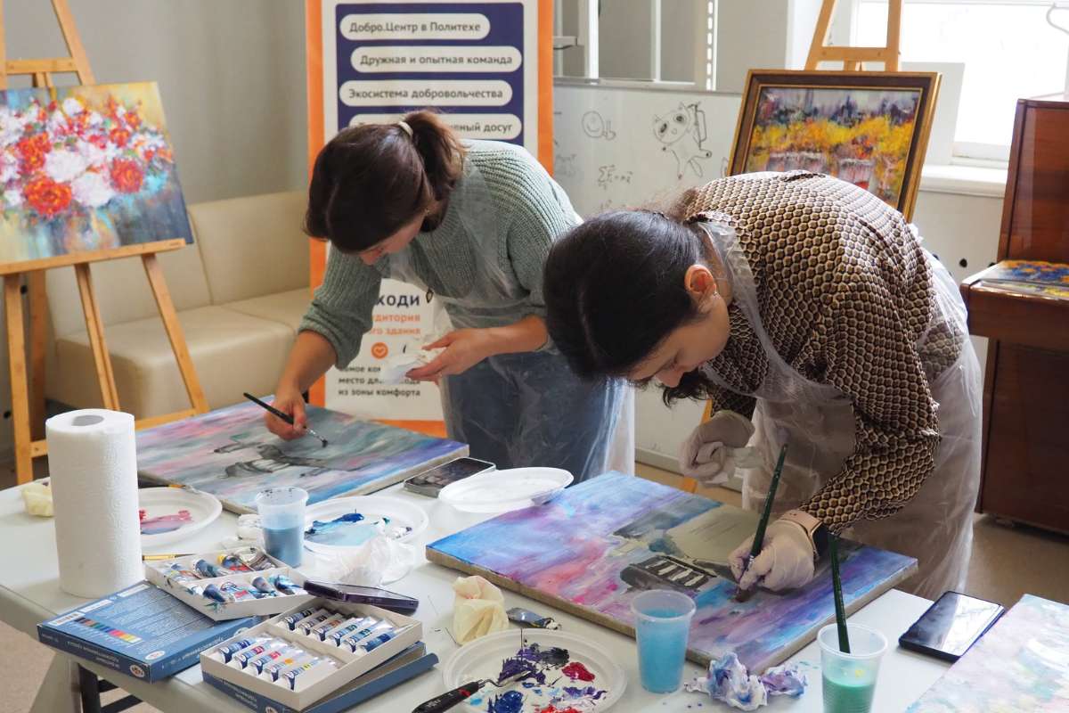 12 апреля 2025 в теплой атмосфере уюта и добра прошел благотворительный мастер-класс по живописи, который традиционно проводит выпускник Политеха, член Союза художников России Александр Дудоров. Участники создали собственные картины акриловыми красками, а все средства, собранные в рамках мероприятия, были направлены на поддержку благотворительного фонда AdVita и помощь детям из Белгородской области, ДНР и ЛНР. Также в рамках благотворительного сбора, прошла выставка картин Александра Алфеевича, в рамках которой амбассадор СПбПУ, руководитель отдела по автоматизации процессов департамента ИТ ГК «БорисХоф» Руслан Талипов приобрел две картины петербургского художника. Эти два ярких примера демонстрируют в действии развитие корпоративного и интеллектуального волонтерства в Политехе.