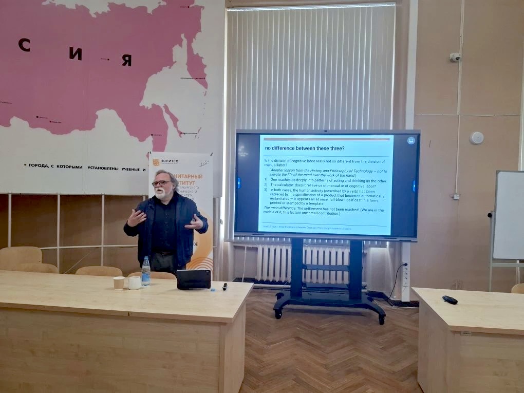 22 апреля 2026 года в Санкт-Петербургском политехническом университете Петра Великого с открытой лекцией «Do it yourself - сделай сам? От автоматического ткацкого станка к ChatGPT и DeepSeek» выступил президент международного общества философии и технологии профессор Альфред Нордманн.